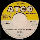 Spain. Charisma 6073 357 - GT01. Rel. 1975. Taken from the album "The Lamb Lies Down On Broadway".