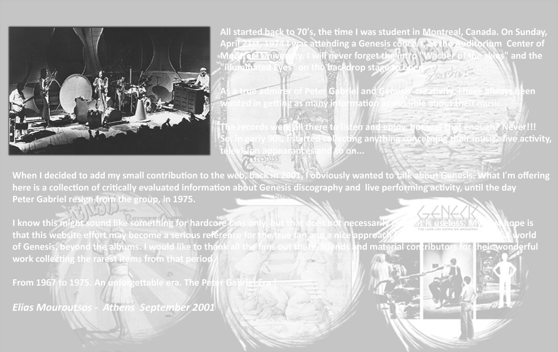 Once upon a time, in a land far, far away. . . England, I think it was called. . . There lived four young men. . Their names were Ant Phillips, Michael Rutherford, Tony Banks and Peter Gabriel.