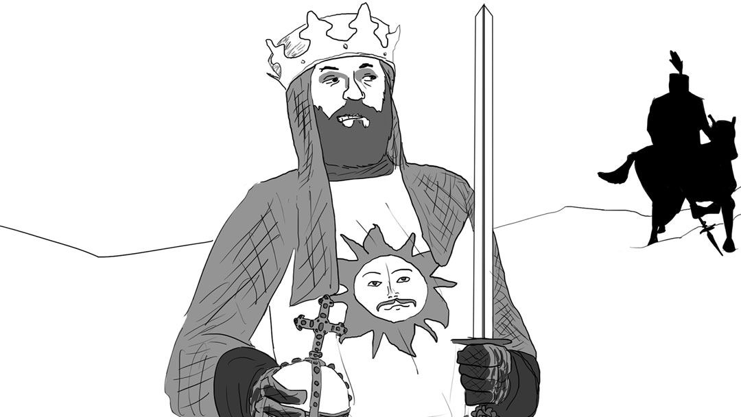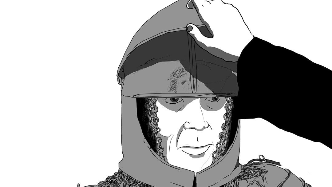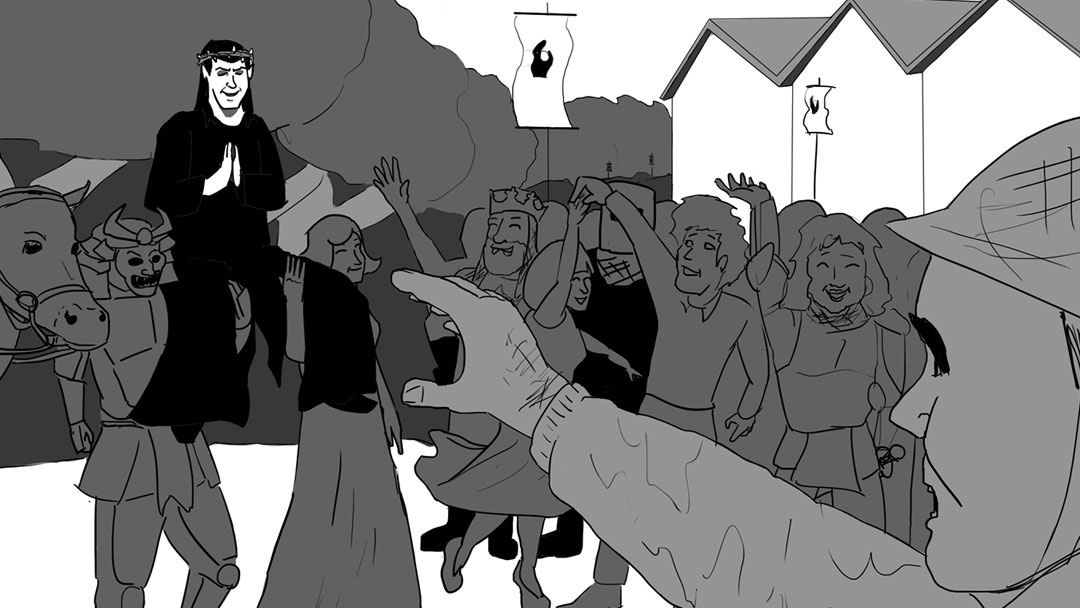 The title's allusion to the legend of Robin Hood alongside its references to ancient and modern figures led me to inhabit the battle with warriors from all periods and places, building on the fluid temporality already established. The dominance of medieval knights is an indirect reference to the nostalgic "Time Table," another song off Foxtrot, but also harkens to the dark ways in which religion is skewered into holy war (e.g. the Crusades). The GESM leads his followers to battle against those who haven't fallen under his sway, and in the heat of the fight we lose sight of the POV.