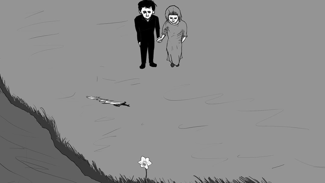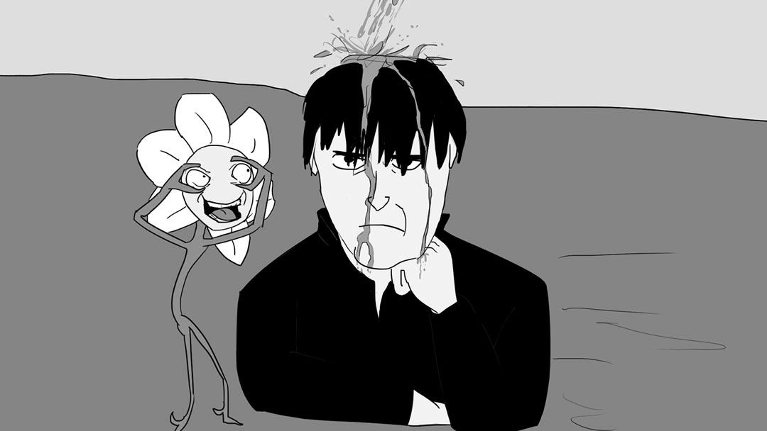 But just as this seems to be the epiphany the POV have been journeying for, the flower addresses the audience (you, the viewer) to confirm that indeed, he's been turned into "a flower?" Through a second of animation, this moment jars our perception and the anomaly finally collapses on itself like a black hole, sucking the POV down into the other side of the world.