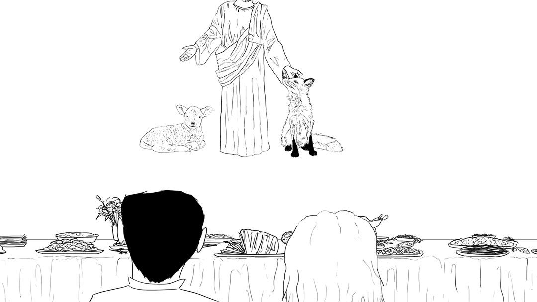 With the "Lord of Lords, King of Kings," I purposely obscure his face to reach for the deeper spiritual meaning of a messiah, but his beard may give a hint to his identity within the comic. The messiah of any faith must act as the bridge between the physical and spiritual realm, shown here through the revived Fox (the physical embodiment of the song, as well as the whole album) and the Lamb (a spiritual successor to Supper's Ready on a grander scale). So while giving the song's narrative its due end, the comic also projects a link between where Supper's Ready would take Genesis further down the road. Each work in an artist's life can act as a synecdoche for their oeuvre when the whole is understood.