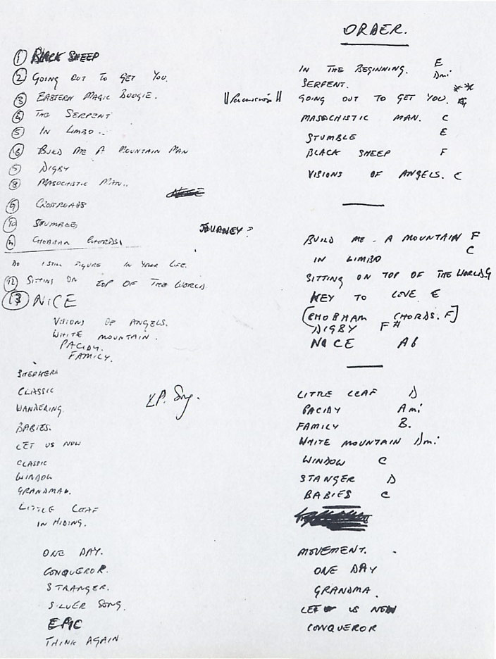 White Mountain was the fourth track of the August 1969 demo, and it found its place in the live set, too. The basic idea for the song came from Anthony Phillips and Mike Rutherford. It was developed by the latter and Tony Banks. It appeared in Genesis set lists while Phillips was in the band, and it was recorded for Trespass. The last time it was played live was in 1976 during Phil Collins’s debut tour as the singer.
